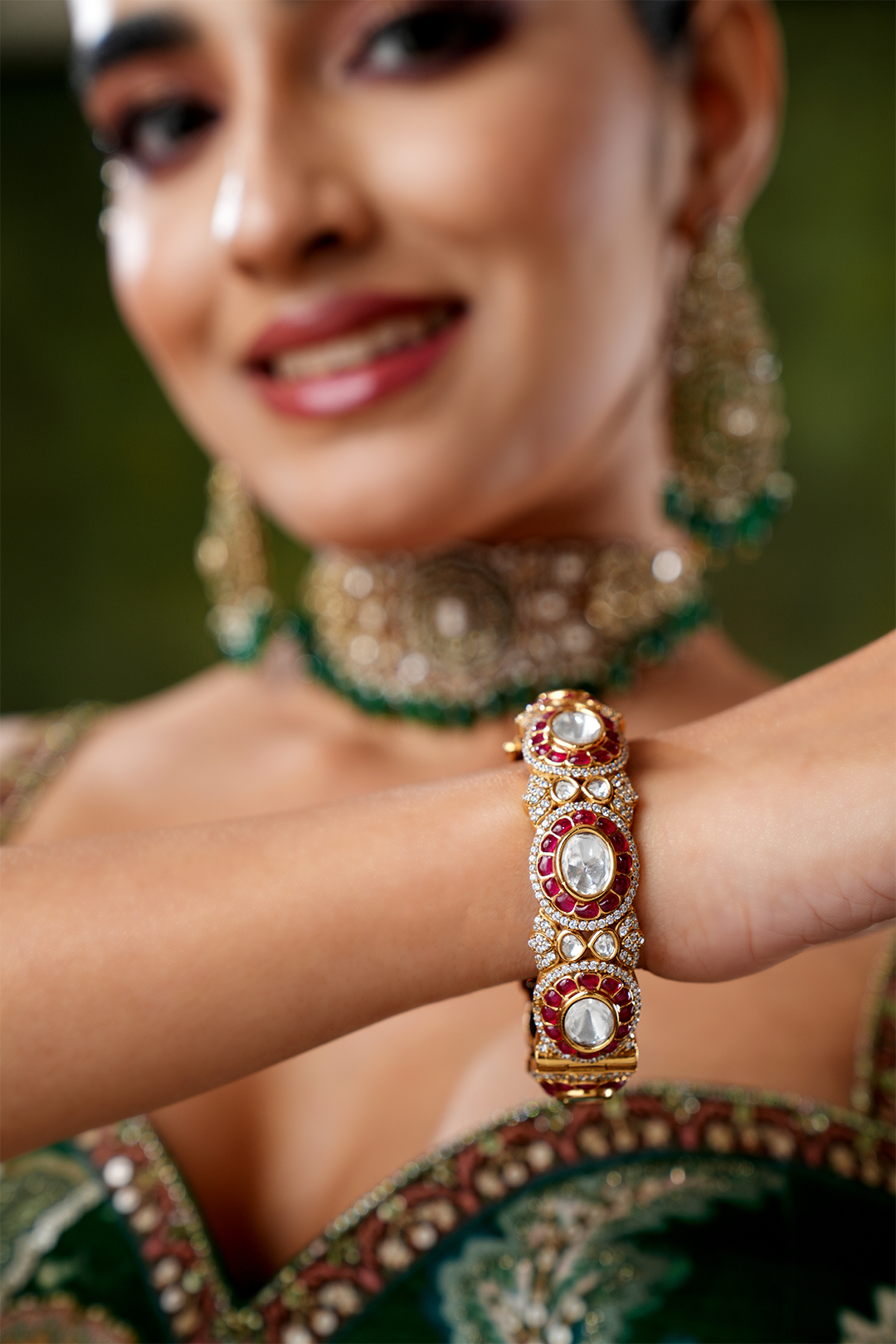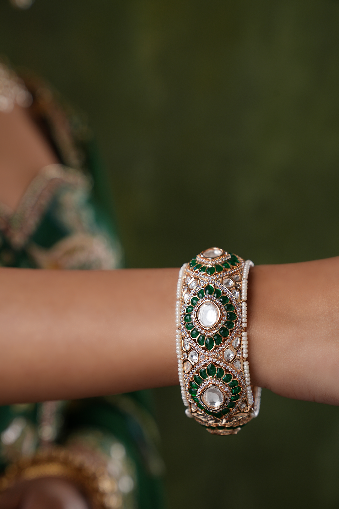Aneet Emerald Polki Pacheli Bangle -Single