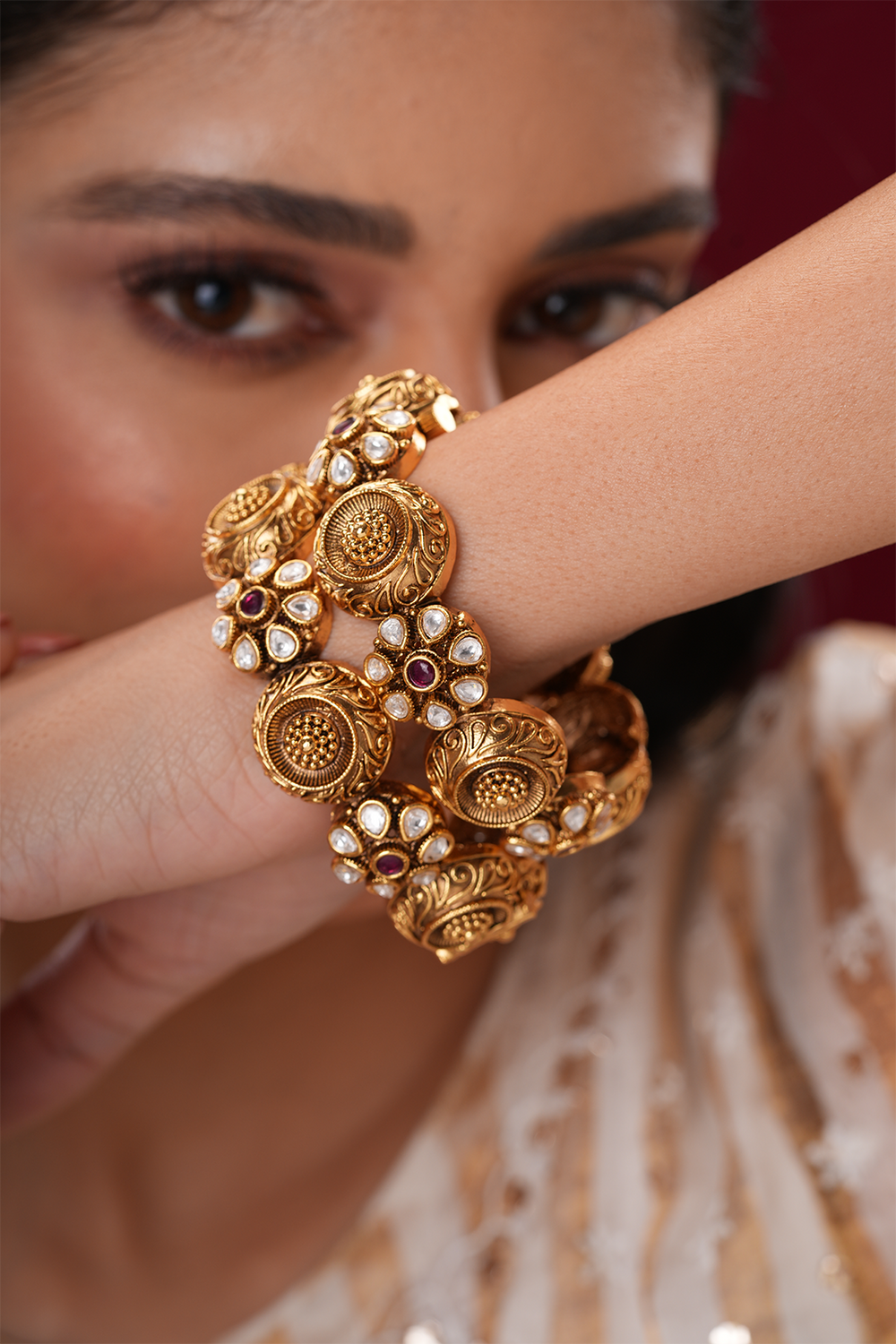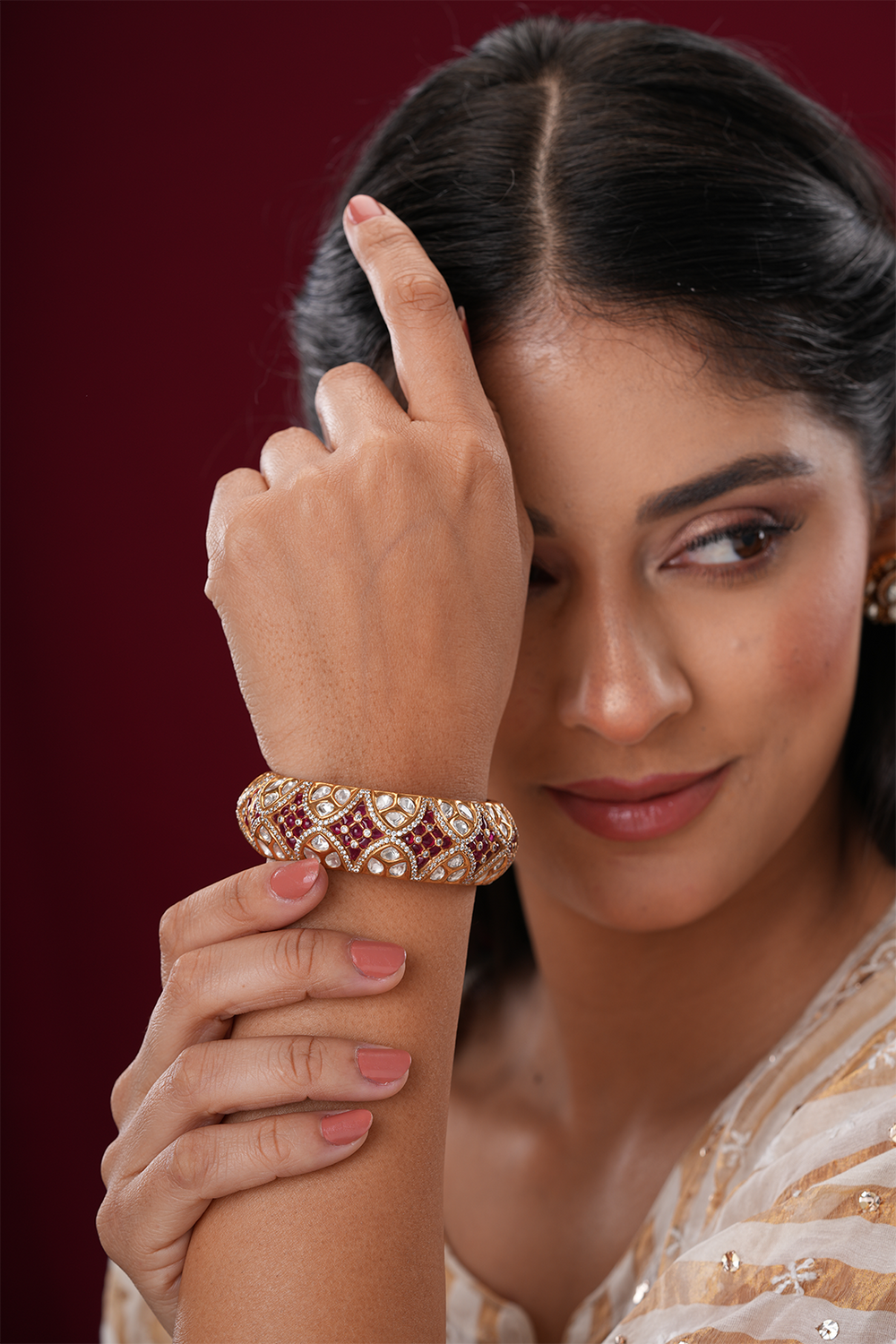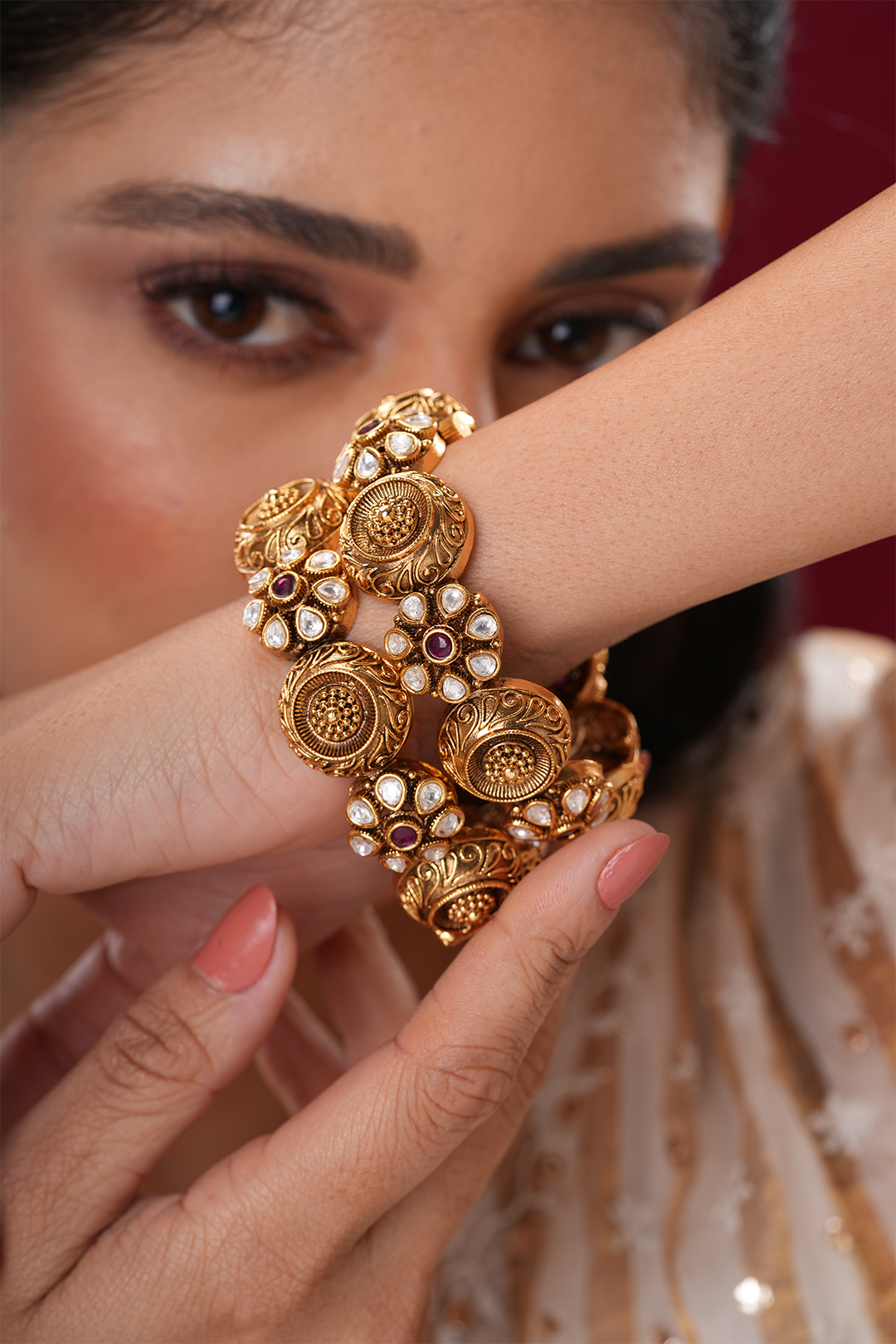 Tamsin Red Polki gajraj Pacheli kada - Single